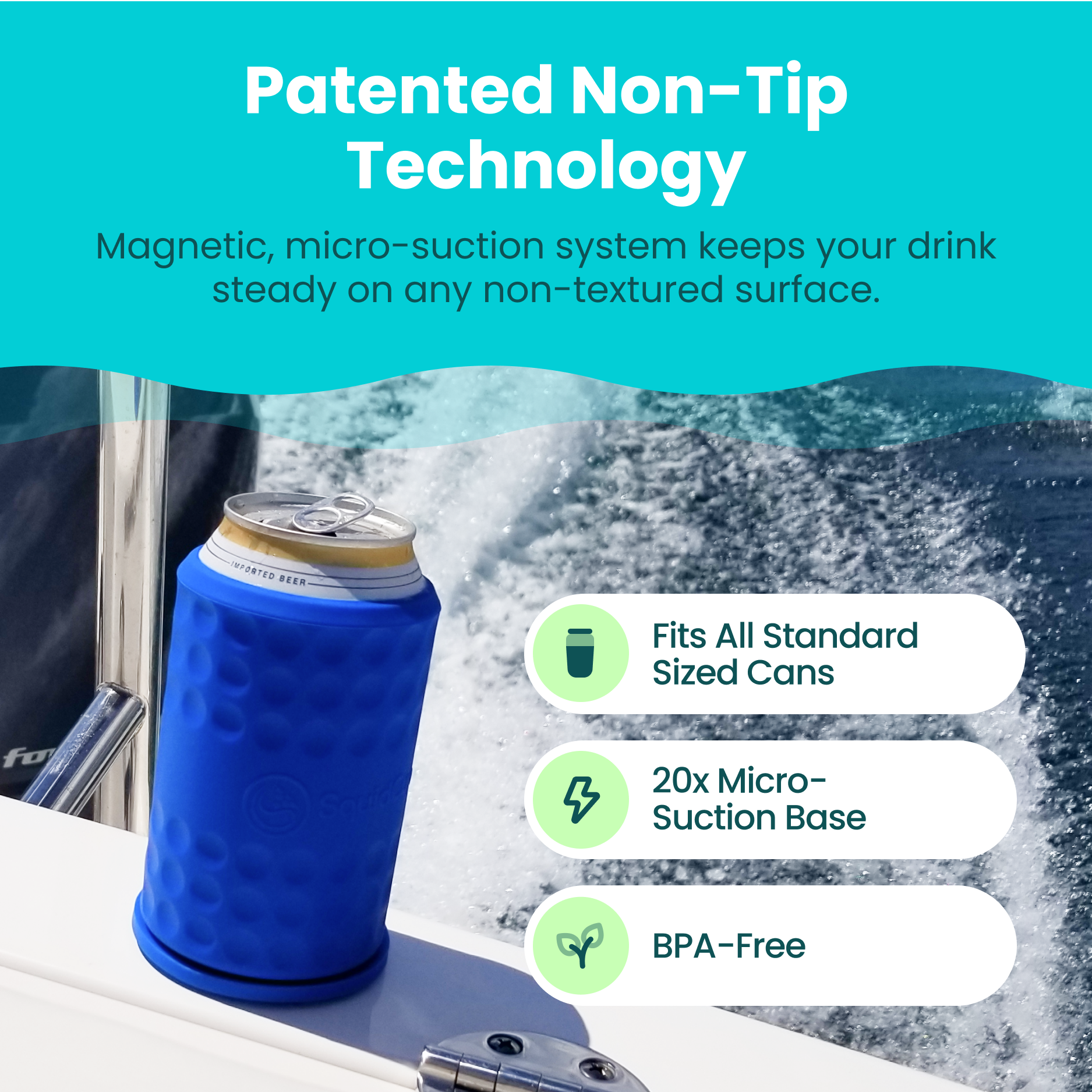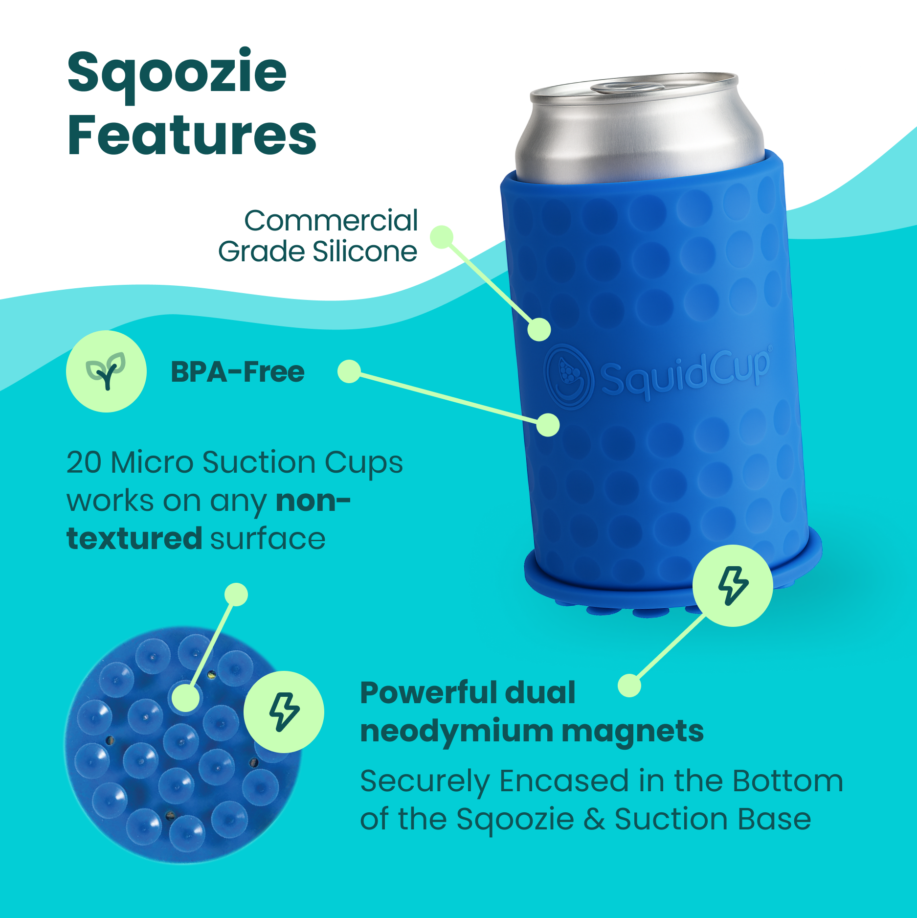 Introducing Sqoozie™ (When a SquidCup becomes a Koozie) the Non-Tipping Insulated Can Holder that features the same dual magnet + micro suction cup technology found in the successful SquidCup system. It creates a cup holder where you need it, with the power and simplicity of both micro suction cups and magnets. Like all SquidCup products, Sqoozie is the only non-tip insulated can holder with both vertical and horizontal holding power that won’t release, but easy to pick-up!  Sqoozie is perfect for boats, RV’s, PWC’s, paddleboards, kayaks, home or garage.